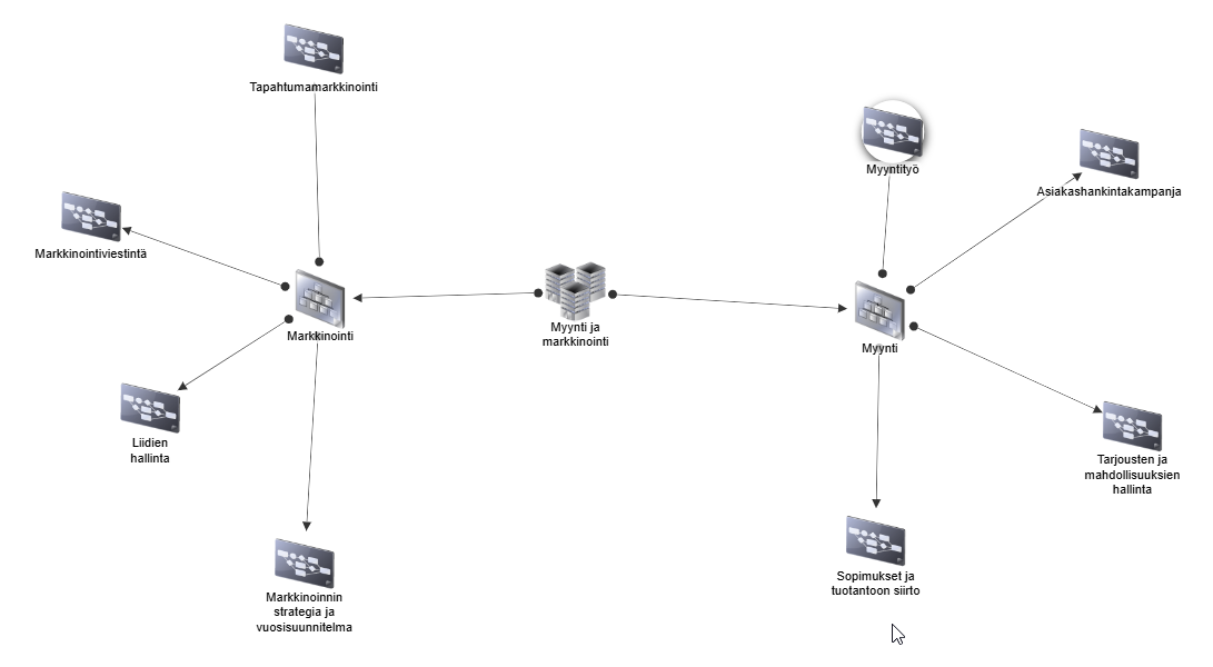 - Toiminto prosesseineen voi palvella myös muiden yksiköiden tarpeita kuten esim. henkilöstöhallinto tai asiakaspalvelu